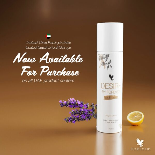 اسپری دئودورانت مردانه فوراور، عطر مردانه فوراور DESIRE BY FOREVER، اعتماد به نفس مردان در عصر امروز را در بر می گیرد و دارای رایحه ای شرقی، چوبی و میوه ای است که از مواد طبیعی مشتق شده است.
