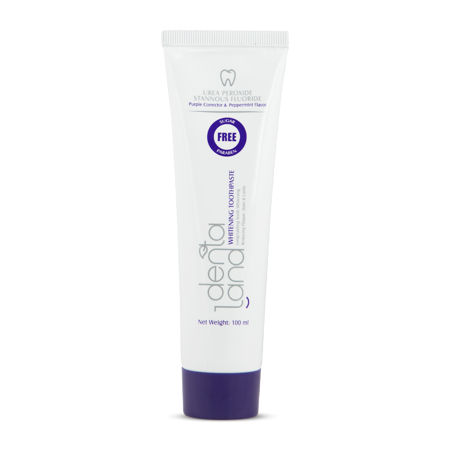 خمیردندان دنتالند سفیدکننده، با بهرهگیری از اوره پراکسید (کاربامیدپراکسید) سطح دندانها را سفید کرده و با استفاده از استانوس فلوراید به عنوان نسل جدیدی از ترکیبات فلوردار و ترکیبات تصحیحگر رنگ بنفش، نوع جدیدی از خمیردندانهای سفیدکننده را به مخاطبان ارائه میکند تا لبخند زیباتری داشته باشند.