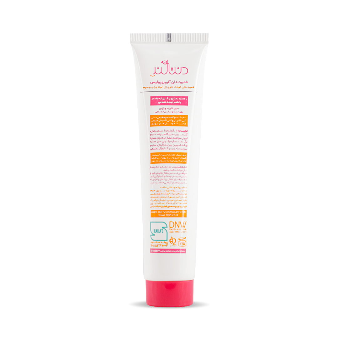 خمیردندان کودک آلوپروپولیس دنتالند، حاوی ژل آلوئهورا و بره موم با طعم آبنبات نعناعی با ارائه فرمولاسیونی جدید برپایه ژل پایدار شده آلوئهورا و بره موم زنبورعسل، ضمن سفیدکنندگی طبیعی و کاهش پوسیدگی و جرم دندان، باعث کاهش التهاب، خونریزی و حساسیت احتمالی لثههای حساس کودکان میشود.