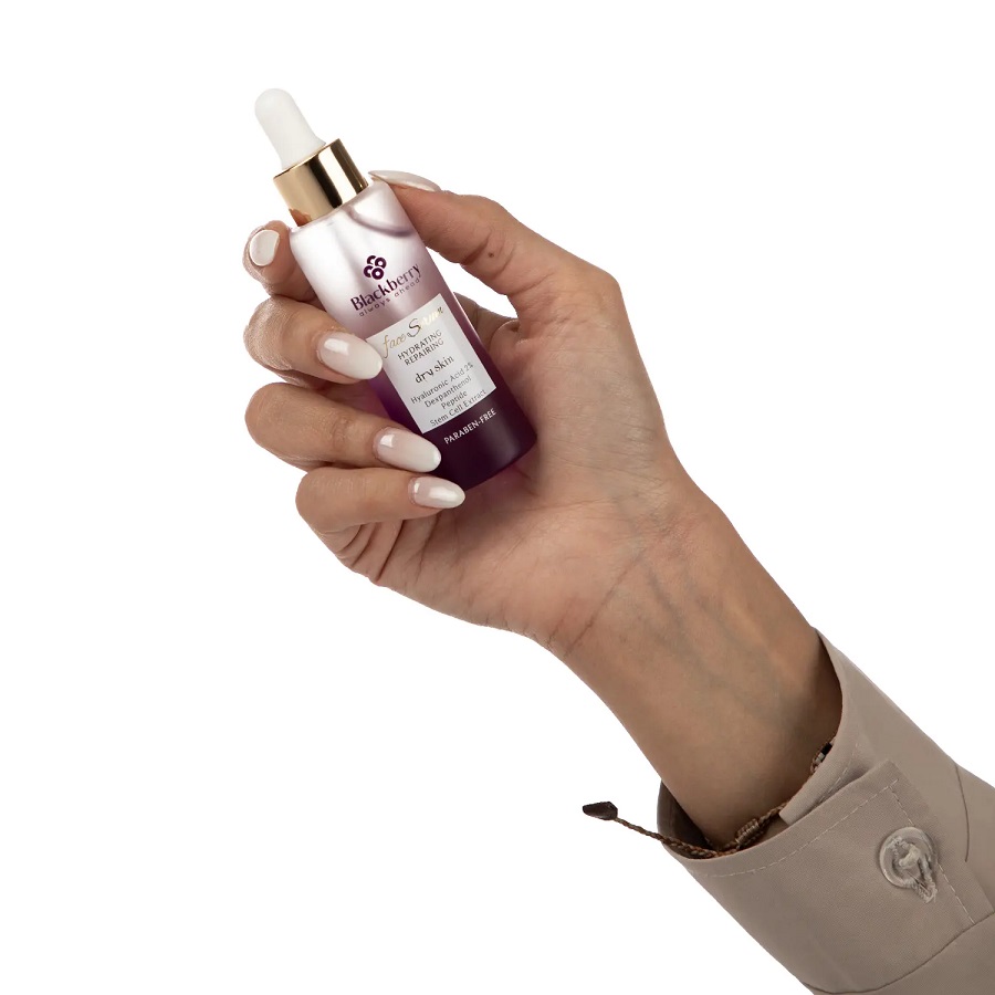سرم صورت آبرسان و ترمیم کننده بلک بری Blackberry برای تامین این دو نیاز اساسی پوست خشک تولید شده و یکی از ترکیبات آبرسان بسیار مهم یعنی سدیم هیالورونات را در خود دارد. باتوجه به اینکه وزن مولکولی سدیم هیالورونات تعیینکننده میزان نفوذ ماده به پوست است، از وزنهای مولکولی مختلف سدیم هیالورونات در این سرم استفاده شده تا لایههای سطحی تا عمقی پوست به خوبی آبرسانی شوند.