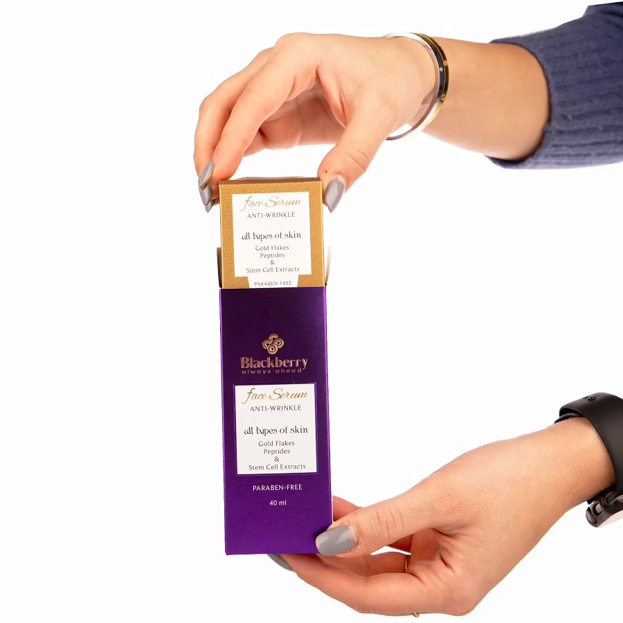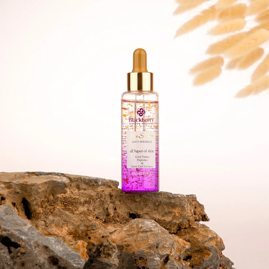 سرم طلا بلک بری ضد چروک حاوی عصاره سلول بنیادی آرگان با ترکیبات جوان کننده به همراه ذرات طلای 24 عیار به سرعت جذب پوست می‌شود